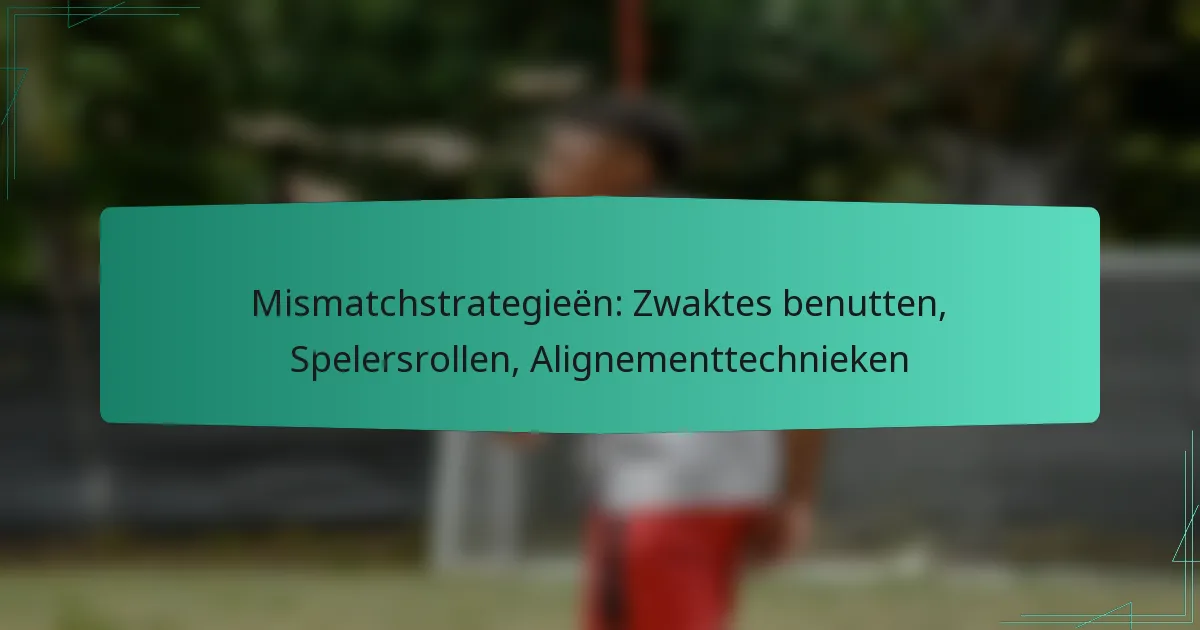 Mismatchstrategieën houden in dat de zwaktes van tegenstanders worden uitgebuit door voordelige matchups te creëren. Deze strategieën zijn cruciaal in sport en gaming, omdat ze de uitkomst aanzienlijk kunnen beïnvloeden door de prestaties van een team te verbeteren via gerichte aligneringen.