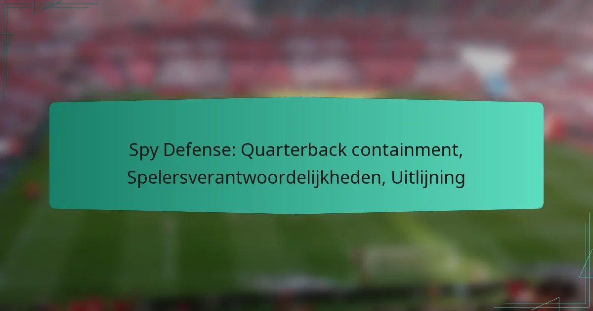Spy defense is een strategische benadering in het voetbal die zich richt op het inperken van de tegenstander quarterback door een specifieke verdediger aan te wijzen om hun bewegingen te volgen. Deze tactiek beperkt niet alleen het vermogen van de quarterback om de pocket te ontvluchten, maar verhoogt ook de algehele effectiviteit van de verdediging. Elke speler heeft gedefinieerde verantwoordelijkheden en een goede uitlijning is essentieel om aanvallende spelen te anticiperen en snel te reageren, zodat de quarterback effectief wordt ingeperkt.